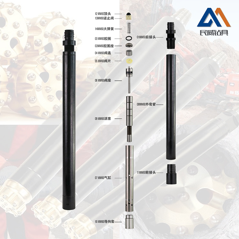 CIR系列冲击器是根据中国矿山及工程凿岩的实际情况,专为矿山及工程施工中的低风压钻机设计,在结构设计上采用现代理论,使应力波持续时间长,应力振幅较低,活塞寿命长。