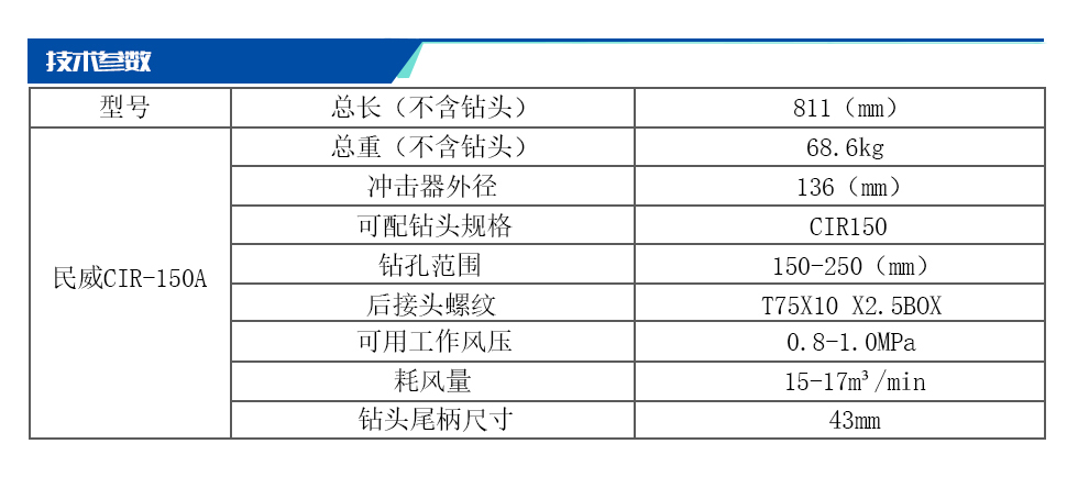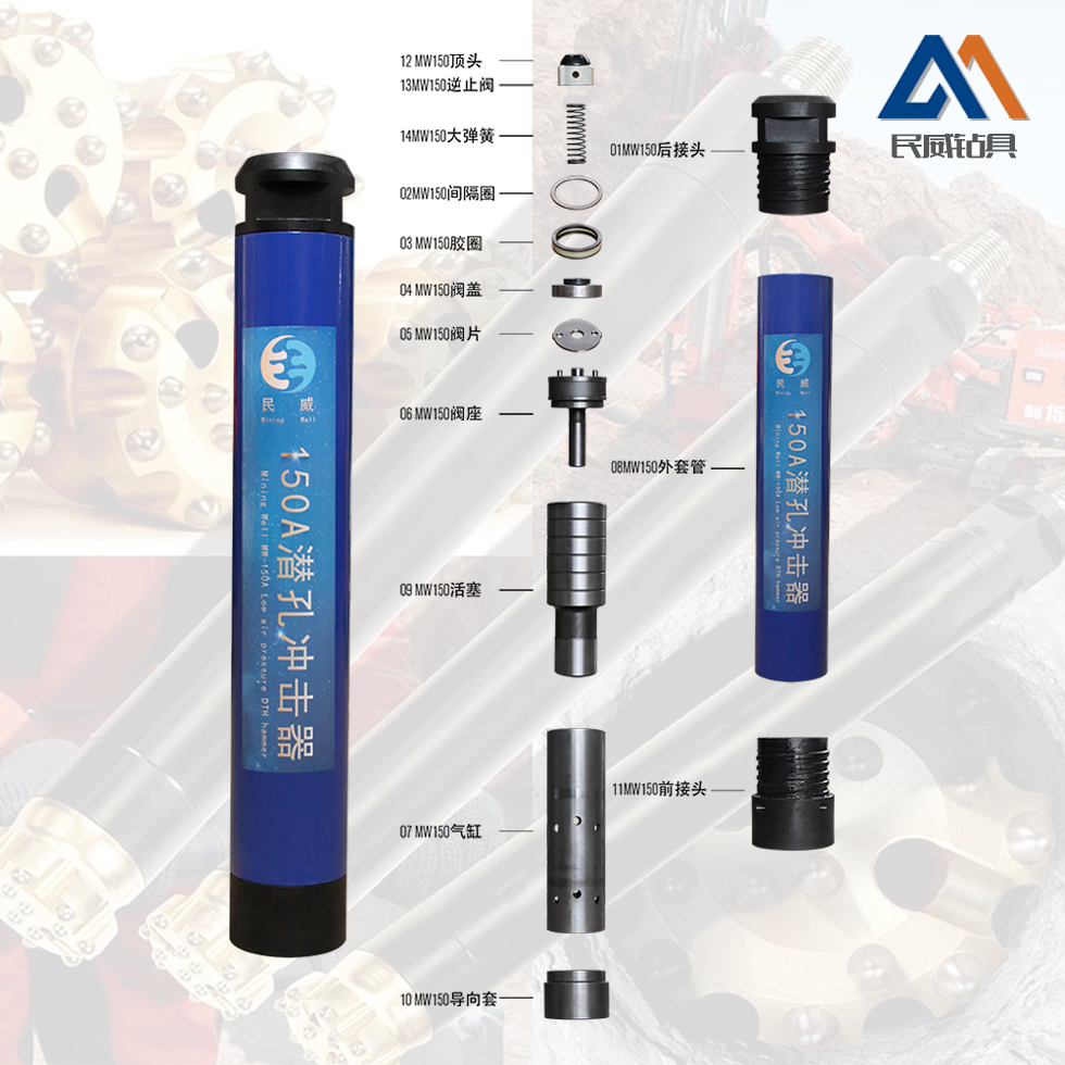 民威CIR系列冲击器是根据中国矿山及工程凿岩的实际情况,专为矿山及工程施工中的低风压钻机设计,在结构设计上采用现代理论,使应力波持续时间长,应力振幅较低,活塞寿命长。