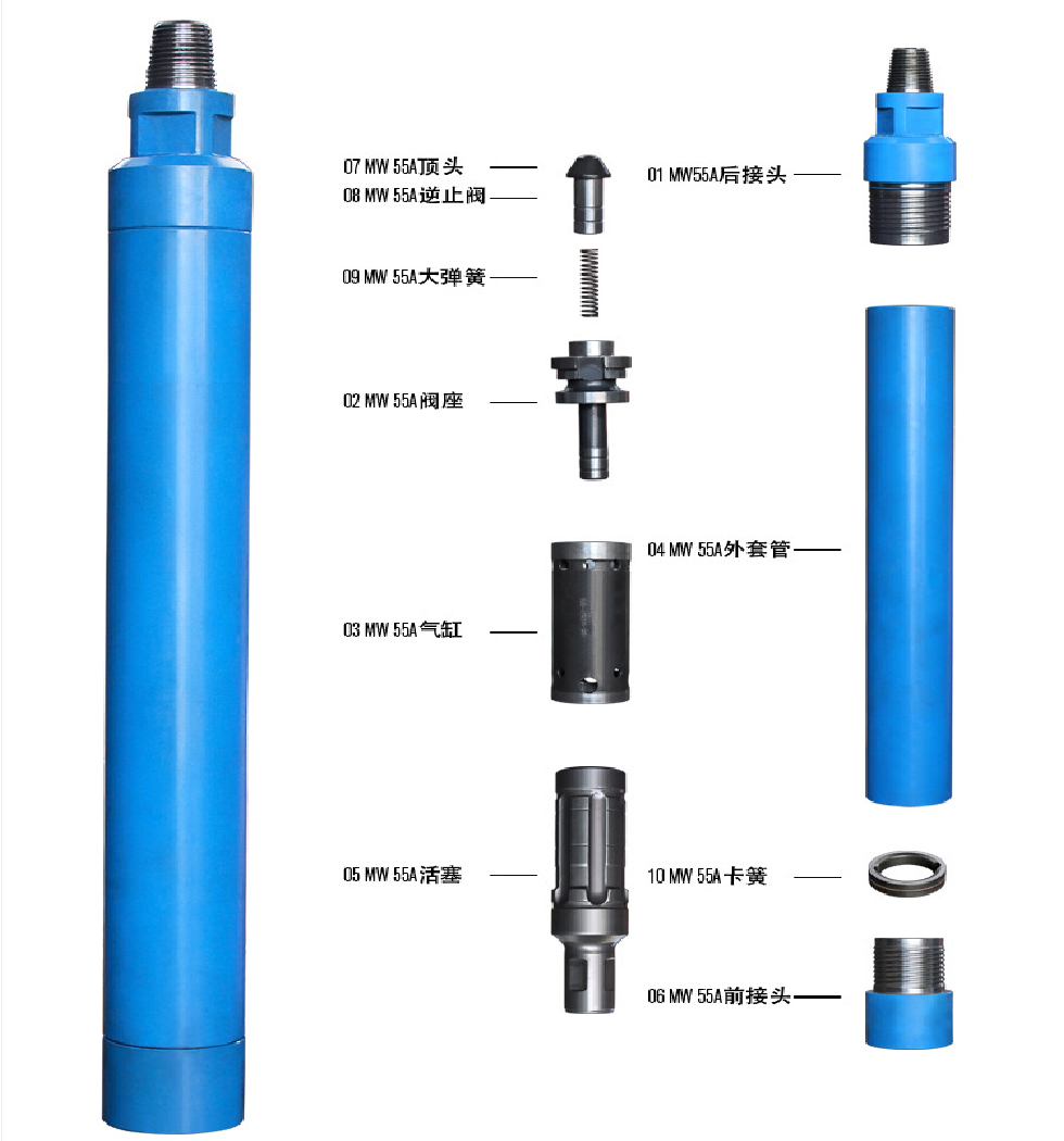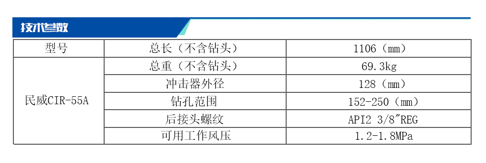 民威DHD高风压冲击器系列应用开钻凿直径(80-185mm)它可在0.56-2.46Mpa的风压状态下作业