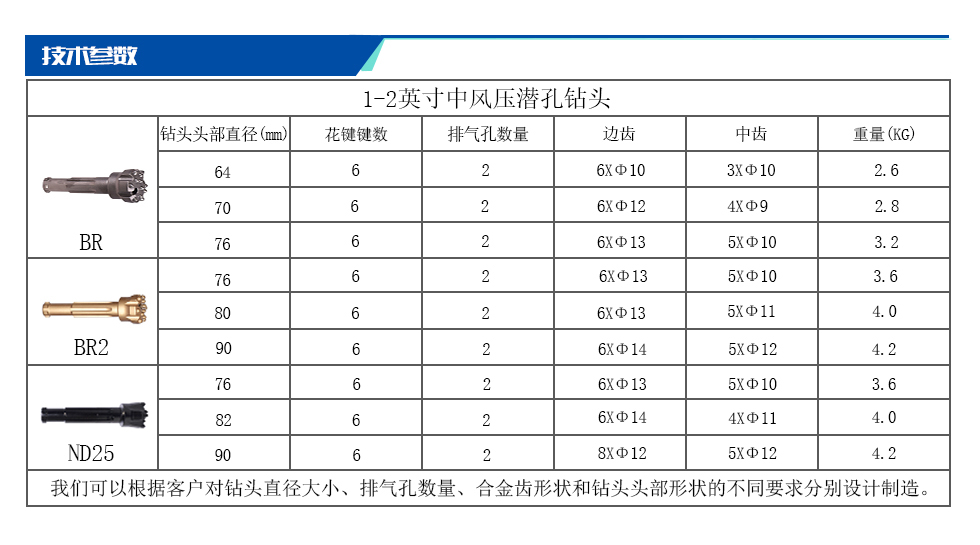 民威潜孔钻采用高质量钢和硬质合金作为原材料,经过特殊的热处理工艺,球齿钻头的硬度强的岩石开挖下达成,并减少在传输过程中的能量损失,齿受力均匀,不易脱落的牙齿和牙齿,所以冲击能量集中岩石上达到高效率的驱动