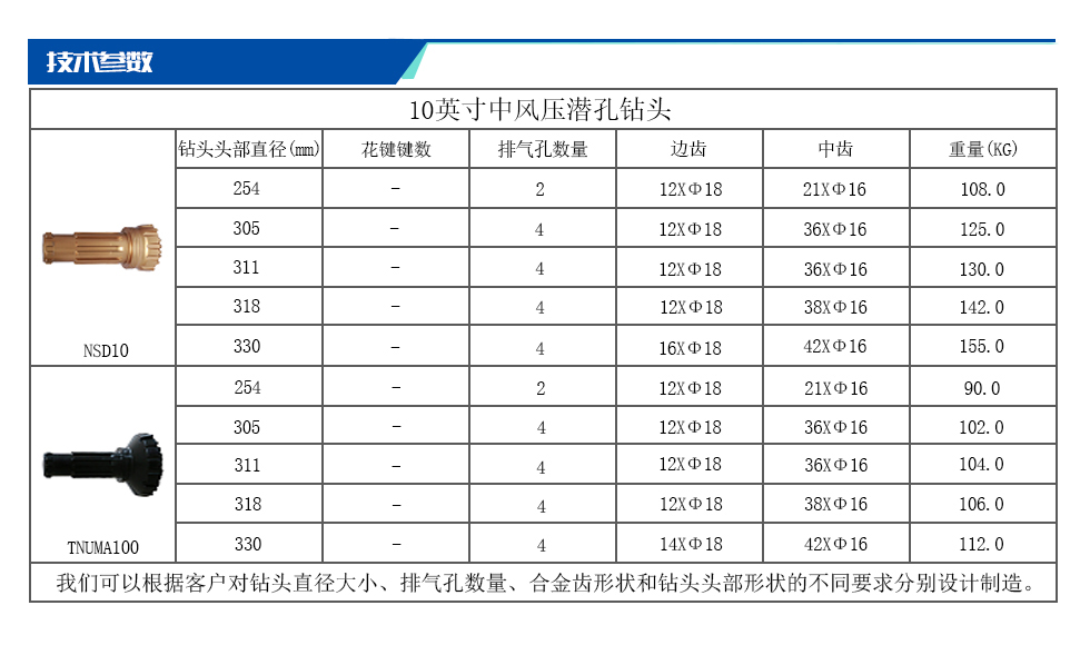民威潜孔钻采用优质的原材料,先进的工艺技术和严格的质量检验,产品范围涵盖:潜孔锤钻头(潜孔锤和潜孔钻头),钻杆螺纹钻头各种大小、反循环锤钻头、钎尾和联接套和钻井设备。 民威冲击器与钻孔钻头相连,用于钻井工程。用优质钢和更佳 水平合金钢为原料,采用特殊的热处理工艺和先进的硬质合金镶入技术,使钻头即使在坚硬岩层上也能很好地发挥作用,同时又能节约能源。