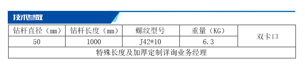 潜孔钻杆外径42mm,50mm,60mm,76mm,89mm,102mm,长1m,2m,3m 潜孔钻杆型号主要有: 76*3000MM潜孔钻杆,76*2000MM潜孔钻杆,60潜孔钻杆,76潜孔钻杆
